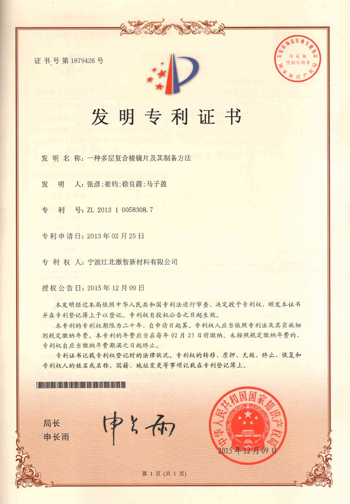 一种多层复合棱镜片及其制备方法