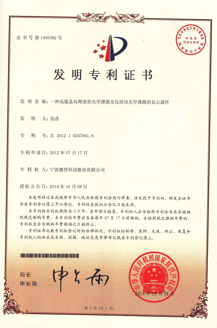 曾获省级科技进步二等奖1次,宁波市科技进步奖一等奖2次;产品多次荣获国家重点新产品、浙江省名牌产品等各类奖项;已获国家发明专利项91项,国际发明专利5项,实用新型专利31项,获十四届、十七届中国专利优秀奖。