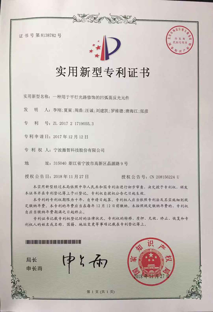 一种用于平行光路修饰的凹弧面反光元件