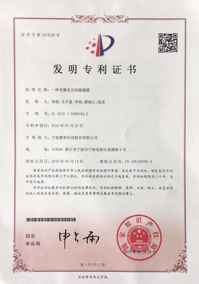 一种受激发光的棱镜膜