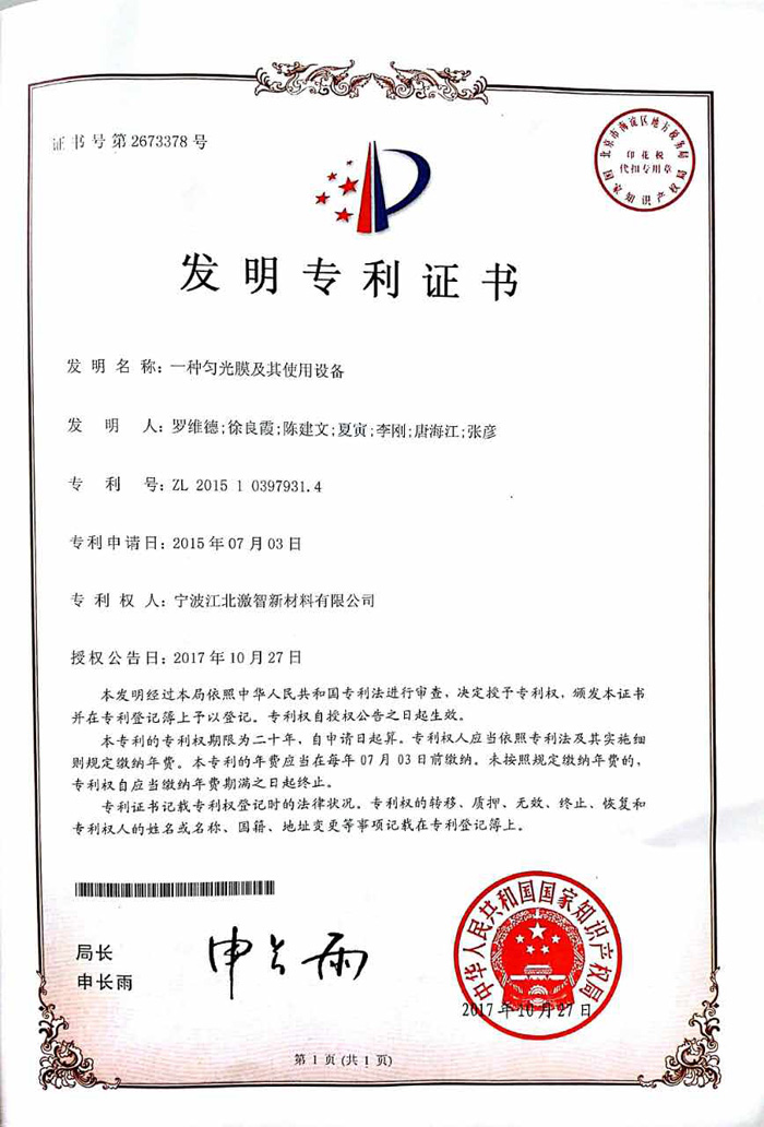 一种匀光膜及其使用设备